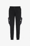 Mukana; Joustava ja vahvistettu vyötärönauha. Näissä housuissa on kiristysnyörillä kaksi suurta taskua, jotka ovat samanlaisia kuin housuissa. pienet vetoketjulliset pussit molemmissa jaloissa. Molemmilla sivuilla on myös kaksi muuta taskua ja toinen raglan on kiinnitetty selkään. takaosa. Tätä taskua koristaa merkkimerkki. Nämä housut on valmistettu porkkanasta muotoilunsa ansiosta. paidan päähän ommeltu kuminauha. jalat.