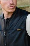The WEST ROAD GOAT DEER BLACK vest by Daytona is a must-have for men seeking elegance and modernity. Crafted from high-quality black goat leather, this sleeveless vest offers a masculine and refined look, ideal for mid-season wear.