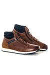 Redskins Zouki Brandy Marine ovat korkeat lenkkarit, joissa yhdistyvät loistavasti mukavuus ja eleganssi. Nahka on täällä kaikkialla, koska sitä löytyy päämateriaaliksi, mutta myös vuoriksi ja päälliseksi. Suunnittelun suhteen kyseessä ovat miesten nahkalenkkarit, joissa on pyöreä kärki ja litteä kantapää. Se, että ne ovat korkeat, tarjoaa täydellisen tuen nilkoissa. Litteät nauhat tuovat ripauksen urheilullisuutta, mikä ei millään tavalla pilaa näiden tennarien eleganttia puolta. Brandyn laivastonsiniset värit mahdollistavat näiden miesten korkeavartisten tennarien yhdistämisen minkä tahansa asuun, olipa kyseessä urheilullinen tai rento.