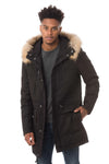 Kiinteä huppu, jossa pesukarhun turkista irrotettava neppari.
