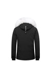 Kiinteä huppu kiristysnyörillä sekä upea aito turkki. irrotettava valkoinen laukku vetoketjulla.