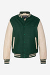 Schott SC1720 -malli on nalletakkimies, joka erottuu tyylikkäästä kaksisävyisestä muotoilustaan kermanvärisillä lehmännahkaisilla hihoilla. Etuosa on valmistettu 70 % villasta ja 30 % nylonista vihreällä värillä, mikä tarjoaa erinomaisen kestävyyden ja optimaalisen mukavuuden. Tämä takki suljetaan vetoketjulla painonappiläpän alla, mikä tarjoaa eristystä ja suojaa tuulta vastaan. Siinä on kaksi alataskua ja kaksi sisätaskua, jotka ovat käytännöllisiä pitämään tärkeimmät tavarat käden ulottuvilla. Kauluksen, hihansuiden ja vaatteen alareunan uurretut viimeistelyt lisäävät hienostuneisuutta ja säilyttävät lämmön. Hillitty sävy-sävyyn Schott-logo edessä ja suuri kontrastivärinen kermanvärinen logo takana täydentävät suunnittelua rohkeasti.