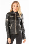 Pyöräilijätyyli on esitetty täällä. kaikessa komeudessaan. Mandariinikaulus, jossa neppari, keskellä vetoketju, 2 rintataskua ja 2 alempaa viistoa taskua. Kaikissa taskuissa on vetoketjut. Nämä ovat erittäin hyvälaatuisia. ja mukana kontrasti beige reunus. Malli yllättää nahkansa viettelevällä patinalla ja kauniilla sävyillä. Olkapäät ja kyynärpäät on vahvistettu erittäin kestävällä tikkauksella, joka rakentaa täydellisen, naisellisen rakenteen. Hihansuissa on vetoketjulliset kulmakivet.