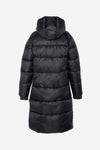 Tämä erittäin pitkä tikattu untuvatakki on valmistettu korkealaatuisesta nylonista, joka eristää erinomaisesti kylmää ja on samalla kevyt. Kiiltävä musta väri lisää ripauksen eleganssia, joka sopii helposti kaiken kanssa. Siinä on kaksi käytännöllistä vetoketjullista taskua edessä, kestävä keskisuljin ja huppu optimaalisen suojan säätä vastaan. Sisustus on vuorattu beigellä nylonilla, mikä luo hienovaraisen ja tyylikkään kontrastin. Lisäksi sitä korostaa pieni Schott-etiketti alareunassa ja logo käsivarressa, mikä vahvistaa sen aitoutta ja laatua.