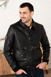 Black PAF leather bomber jacket with shirt collar - Image n°1