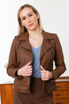 Ihastu tähän upeaan OAKWOOD-merkin LISA 6 COGNAC 507 naisten takkiin. Perfecto revisited leikatusta lampaannahasta tavallisella leikkauksella, joka varmistaa optimaalisen mukavuuden.