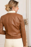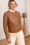 SERGE PARIENTE -merkki esittelee upean naisten CAROLINE COGNAC -takkin. Mandariinikaulustakki on valmistettu lampaannahasta ja leikattu kapealla leikkauksella.