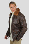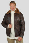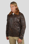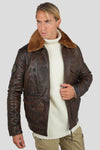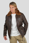 PAF distressed brown leather bomber jacket with shearling collar - Image n°1