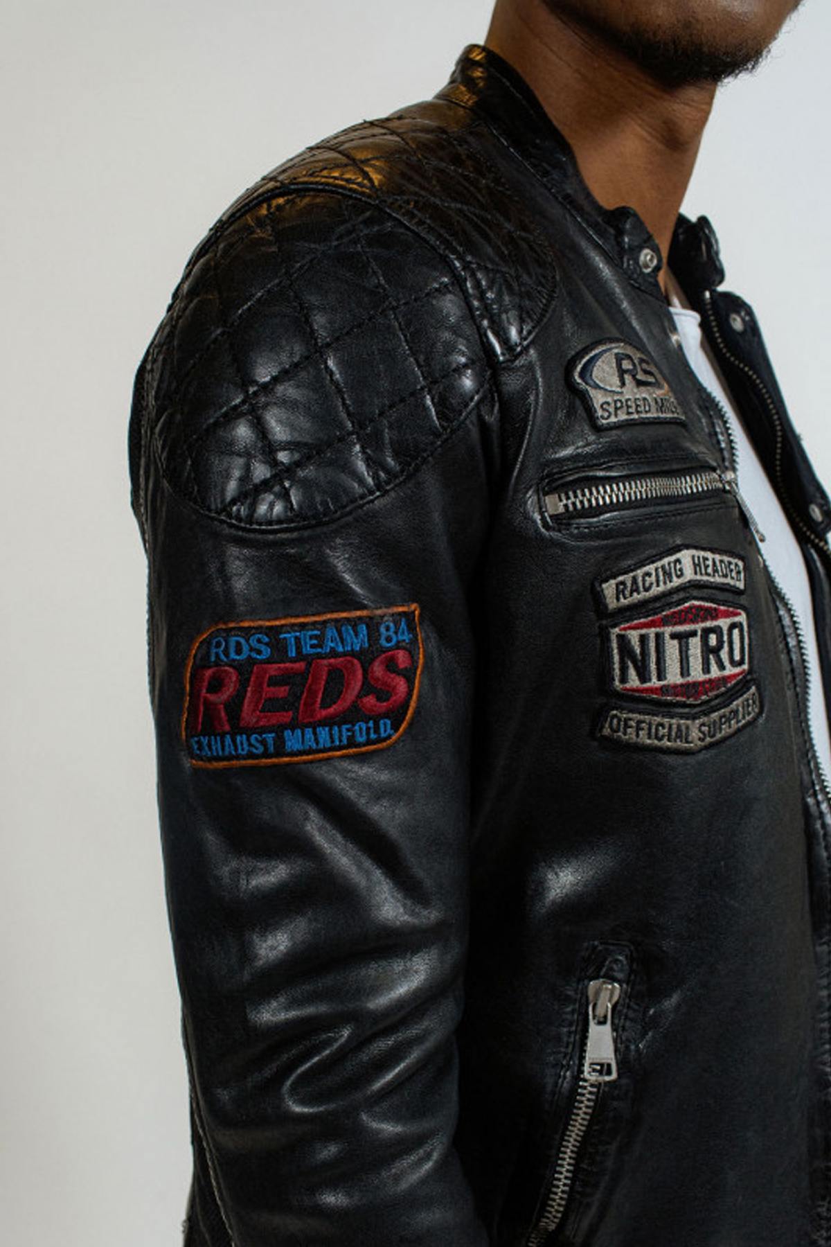 NITRO BARCELONA BLACK on upea lampaannahka REDSKINS-brändiltä. Biker-kaulus, jossa on laastarit erittäin muodikkaan ja erittäin trendikkääseen ilmeeseen.