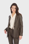 OAKWOOD-brändi on suunnitellut upouuden mallin naisille, jotka rakastavat bleisereita. MEG MARRON 502 on tämän hetken uutuus tumman khakin värillään ja epätyypillisellä muotoilullaan. Tämä on lampaannahkainen nahkatakki, jossa on melko klassinen leikkaus, koska vetoketju on tässä korvattu napeilla vakavamman ilmeen saamiseksi. Slimfit-leikkaus lisää eleganssia ja mahdollistaa mallin, joka erottuu tavallisesta. Tämä takki sopii erinomaisesti kauden puoliväliin, koska sitä voidaan käyttää sekä keväällä että itsenäisenä. Tämä bleiseri on helppo käyttää ekkrupuseron ja mustien housujen kanssa. Nykyaikaisemman ilmeen saamiseksi se voidaan yhdistää lenkkariin.