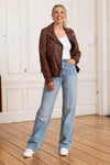 "VIDEO PORTO 630" on takki, joka erottuu monipuolisuudestaan ​​ja ajattomasta tyylistään. Se on valmistettu korkealaatuisesta lampaannahasta, ja siinä on täyteläinen ruskea väri, joka sopii helposti mihin tahansa asuun. Se sopii kaikkiin vuodenaikoihin, ja sen muotoilua korostavat harkitut yksityiskohdat, kuten kolme toimivaa vetoketjullista taskua, tyylikäs hihna kauluksessa ja nepparit vyötäröllä, jotka lisäävät rock'n'rollin tuntua. Tavallisen leikkauksen ansiosta tämä takki sopii kaikille vartalotyypeille ja lupaa mukavuutta ja helppoutta. Puuvillavuori takaa vertaansa vailla olevan pehmeän tunteen, kun taas sileä nahkaviimeistely tarjoaa tyylikkään mutta rennon ilmeen.