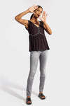 Tämä Kaporalin musta Arty Black toppi on valmistettu sekä trendikkäästä että rennosta. Kotona valmistettu viskoosipohjainen t-paita on leikattu sopivaan kokoon. tavallisessa leikkauksessa, joka löystyy koon jälkeen.