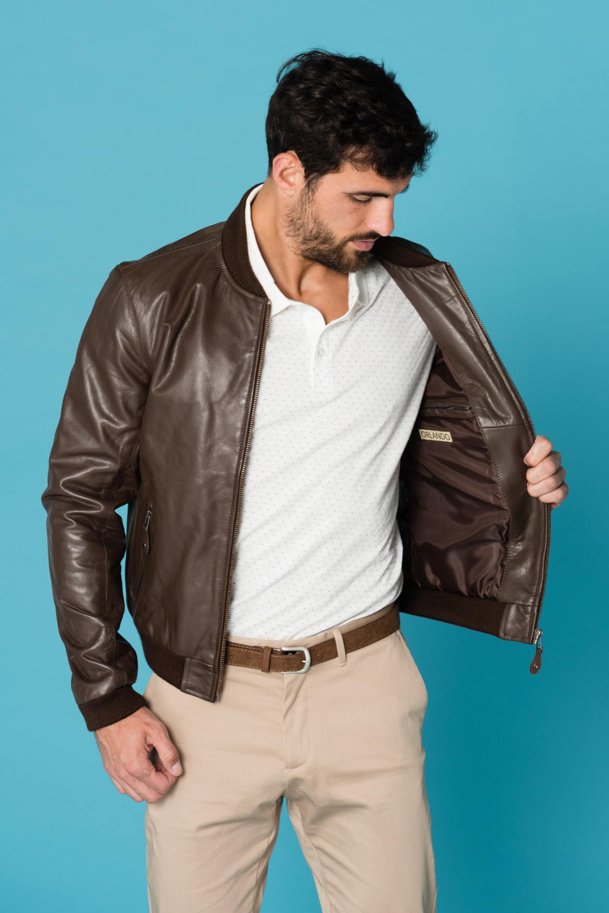 Bomber on ajaton takki urheiluvaatteellisella tyylillä. ORLANDO COGNAC on valmistettu puhvelin nahasta, paksu ja kestävä, siinä on polyesterivuori. Resorireunat kauluksessa, hihansuissa ja sivuilla. kokoa. 2 vetoketjullista sivutaskua edessä, 1 tasku...