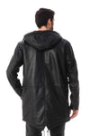 Kiristyssiteet alareunassa alareunassa; takana ja edessä huppu.