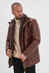 Made from premium quality sheepskin leather, this jacket features a regular fit that suits all body types. Its bison shade adds timeless elegance. The design includes a high collar with adjustable strap, a sturdy zipper closure, and several zipped exterior pockets for the perfect blend of style and functionality. The interior lining ensures optimal comfort on chilly days.