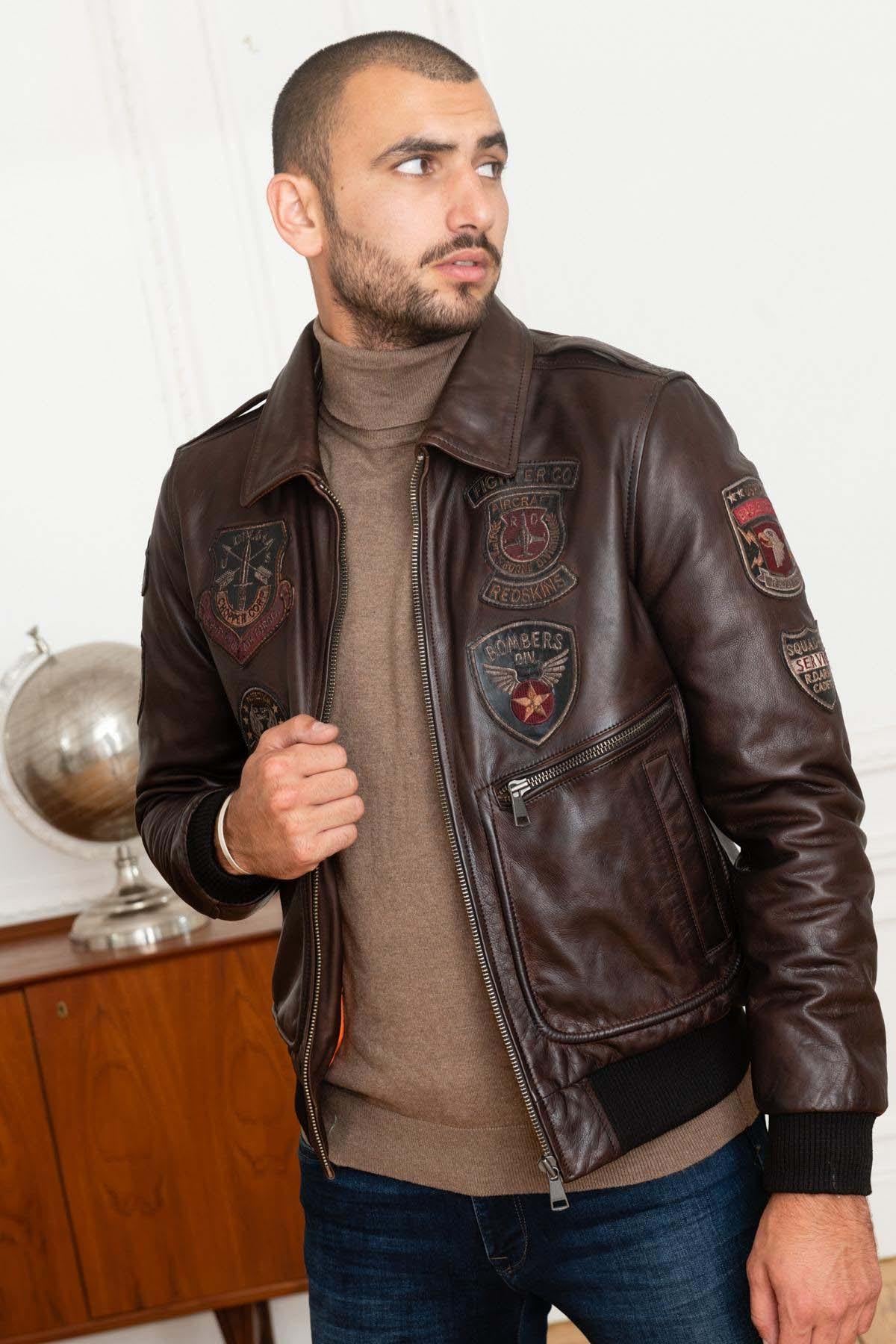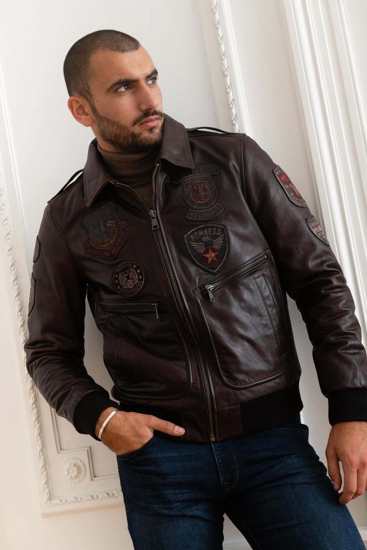 Miesten Redskins-brändin AVIA 2 ARGUS BROWN -takki on ruskeasta lehmännahasta valmistettu bomber-takki. Se on kaikkina vuodenaikoina sopiva takki. Siinä on normaali tai suora leikkaus, joka sopii kaikille vartalotyypeille.