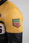 Puhtaasti mekaanisessa urheilutyylissä tämä takki yhdistää upeasti värit keltainen, musta, valkoinen ja punainen. Kaulus on varustettu hihnasta napsautusnapille, joka synnyttää; pitkä aksiaalinen metallivetoketju, joka on samanlainen kuin sivutaskuissa ja pitkien hihojen päissä. Merkkimerkit asetetaan kengän kummallekin puolelle. rinnassa ja vasemmassa hihassa. Tuotemerkki on painettu etikettiin. suuressa muodossa rintakuvan valkoisella nauhalla.