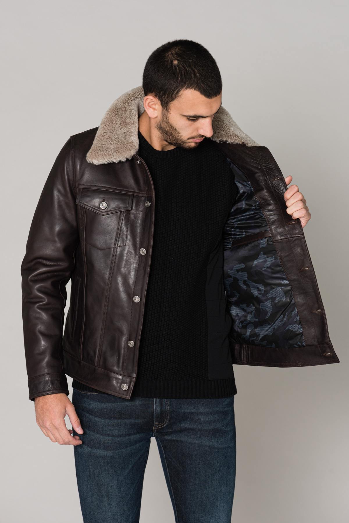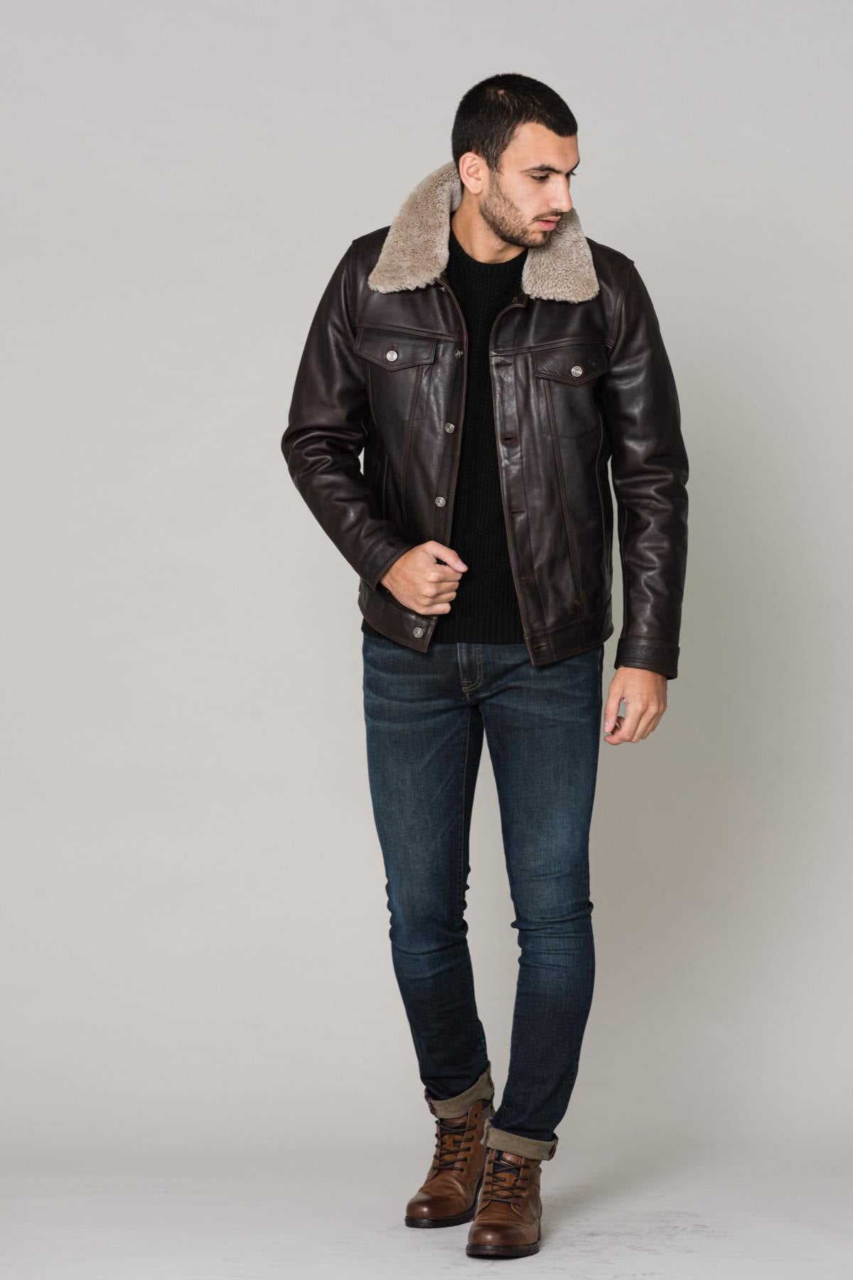 Brown aviator with fur collar - Image n°7