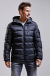 Tämä untuvatakki on todellinen mukavuuden pesä korkealla kauluksellaan ja suurella pehmustetulla hupulla, jossa on kiristysnyöri. Pitkä metallivetoketju varmistaa akselin sulkemisen. Kaksi vetoketjullista sivutaskua on korostettu, samoin kuin rintatasku. Vasempaan hihaan on ommeltu ike, jossa on merkkitarra. Pitkien hihojen päädyt on resori.