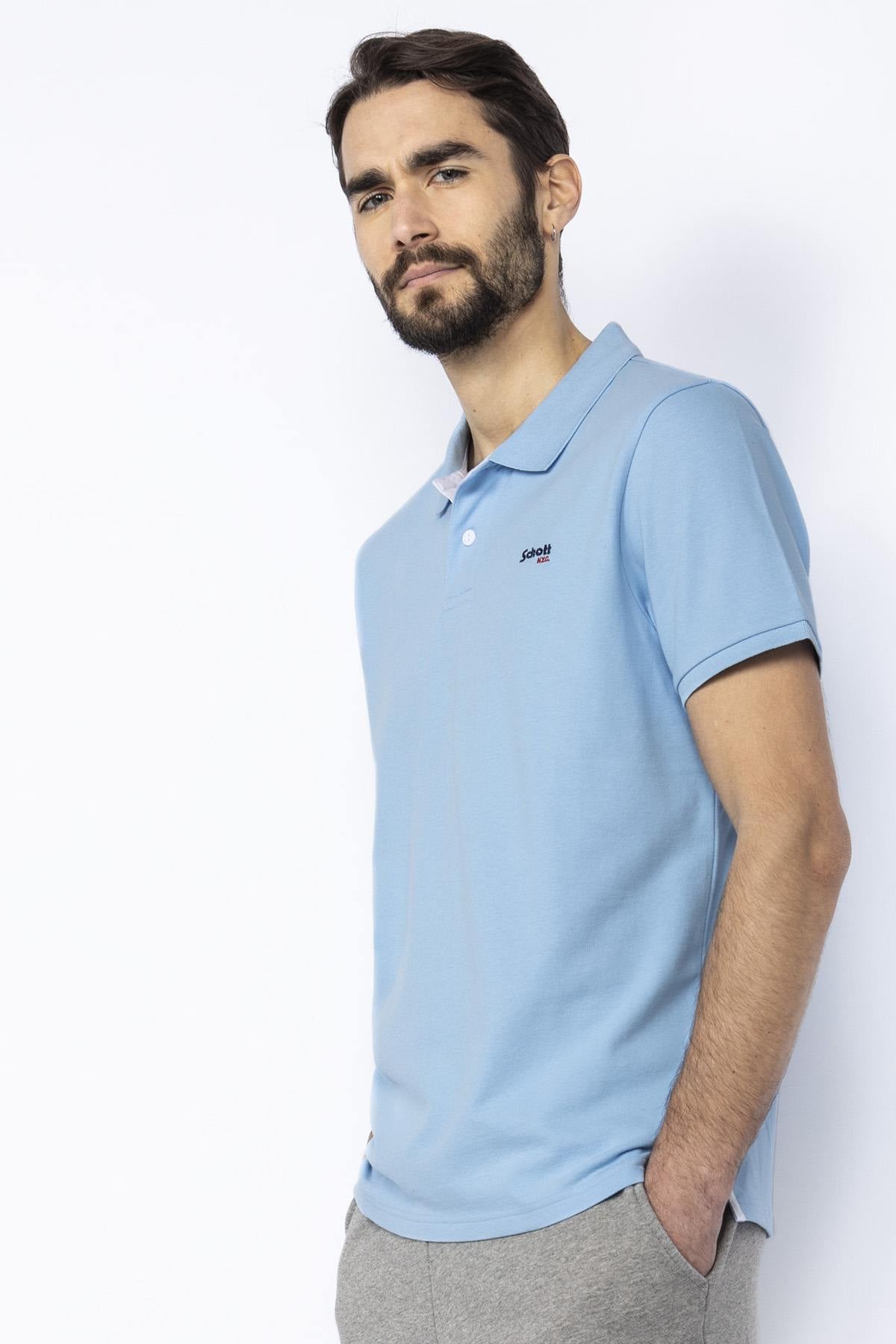 Miesten poolopaita Schott PSMILTON SKY/WHITE