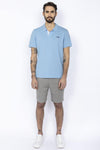 Sky blue and white cotton polo shirt - Image n°1
