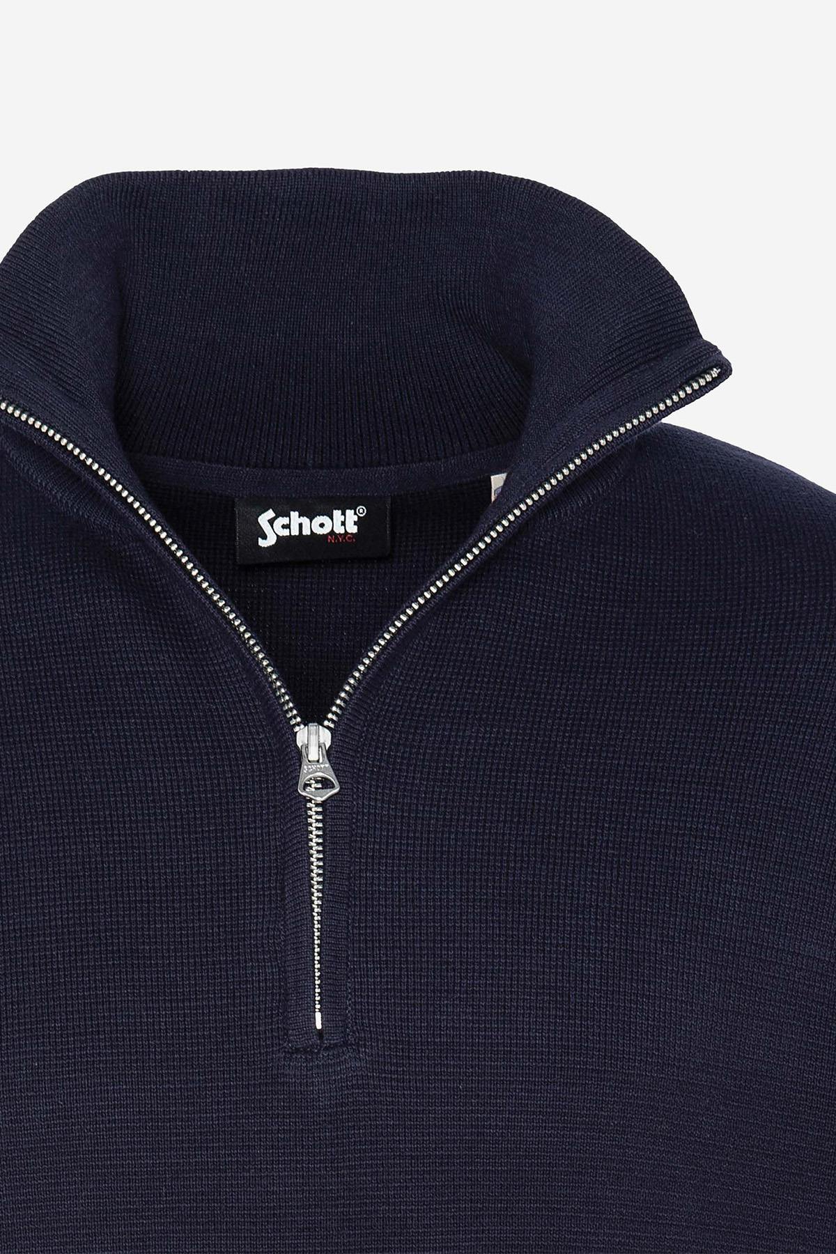 Navy Blue Cotton Zip Neck Sweater - Image n°1