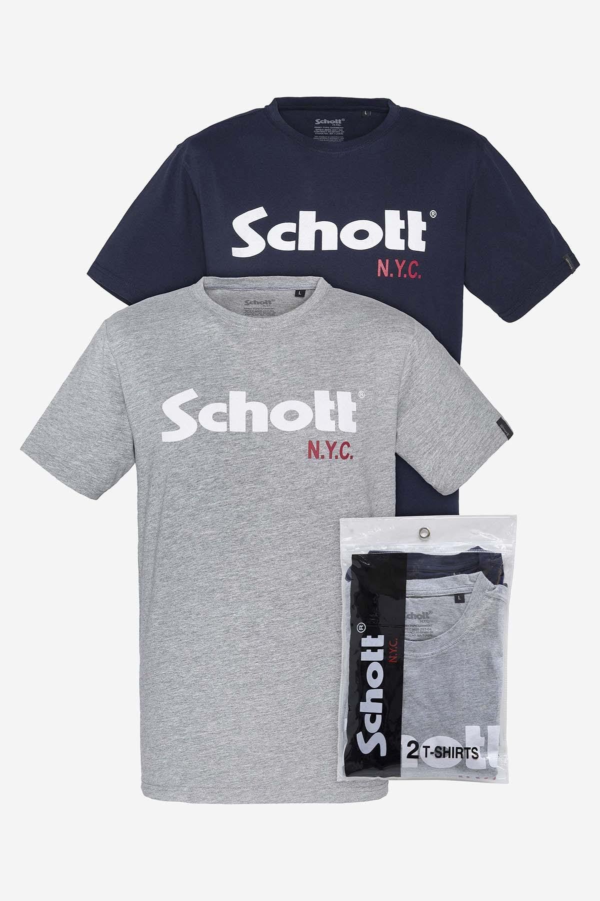 Miesten Schott-brändin TS01MCLOGO NAVY/GREY t-paita on tummansinistä puuvillaa.