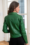 Oakwood-brändin naisten CLIPS 6 VERT 521 -takki on vihreästä lampaannahasta valmistettu perfecto-takki. Se on kaikkina vuodenaikoina sopiva takki. Siinä on slimfit-leikkaus, eli istuva ja kulunut lähellä vartaloa.