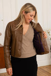 Oakwoodin naisten Grace Fauve 510 -takki on valmistettu tyylikkääseen, eleganttiin ja moderniin tyyliin. Tämä lampaannahasta valmistettu pala on myös kevyt ja miellyttävä päällä. Tämä nahkatakki on valmistettu paidan kauluksella ja päänapilla edessä. Sen muotoilua leimaavat leikkaukset ja ompeleet hihoissa ja rinnassa. Mukavuuden lisäämiseksi tässä naisten takissa on kontrastivärinen vuori, jossa on vetoketjullinen sisätasku. Tämä Oakwoodin nahkatakki sopii tyylikkääseen, tyylikkääseen tai rentoon lookiin. Sitä voidaan käyttää kaikkina vuodenaikoina chinohousujen, farkkujen tai hameen kanssa, jonka sisällä on pusero talvella.