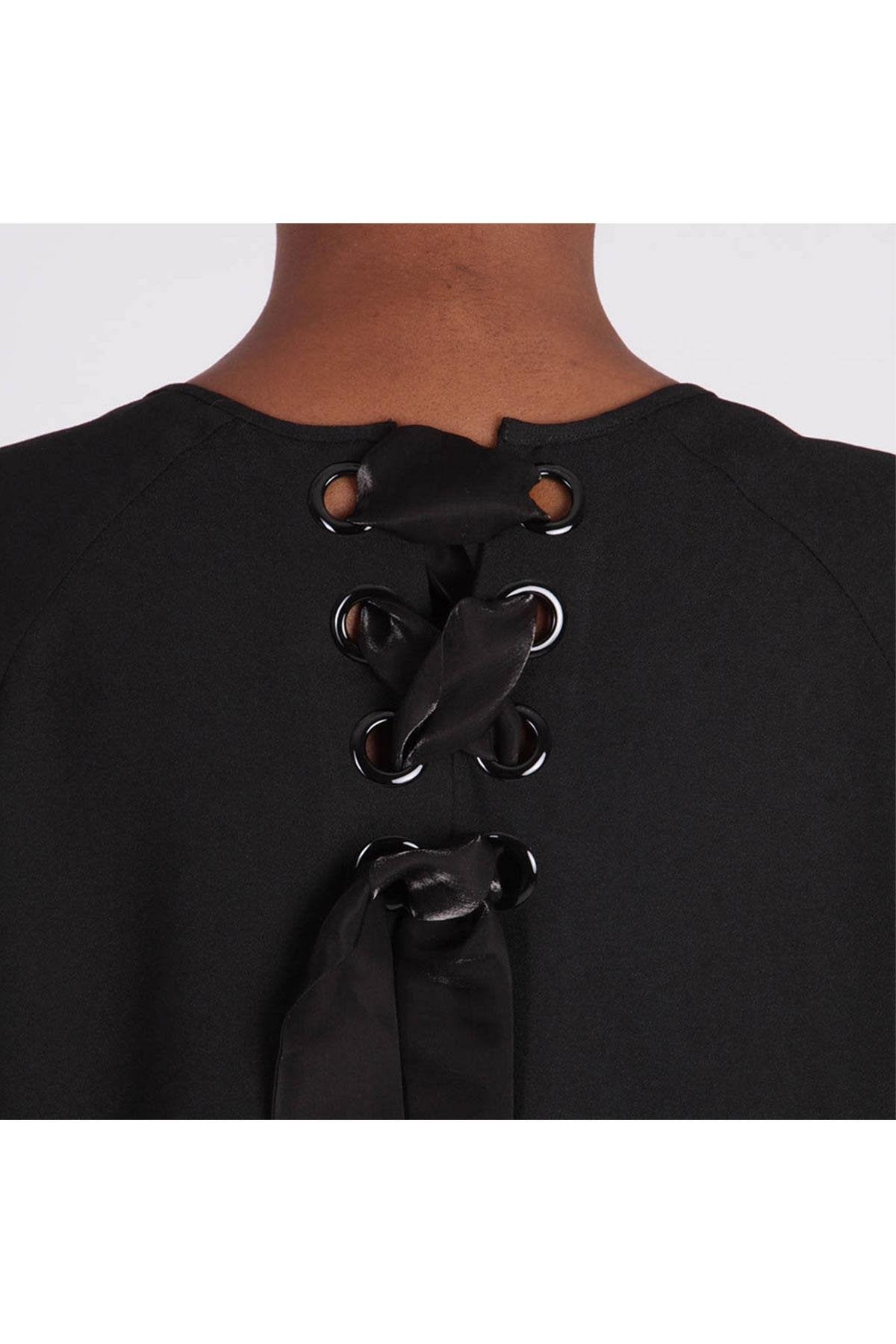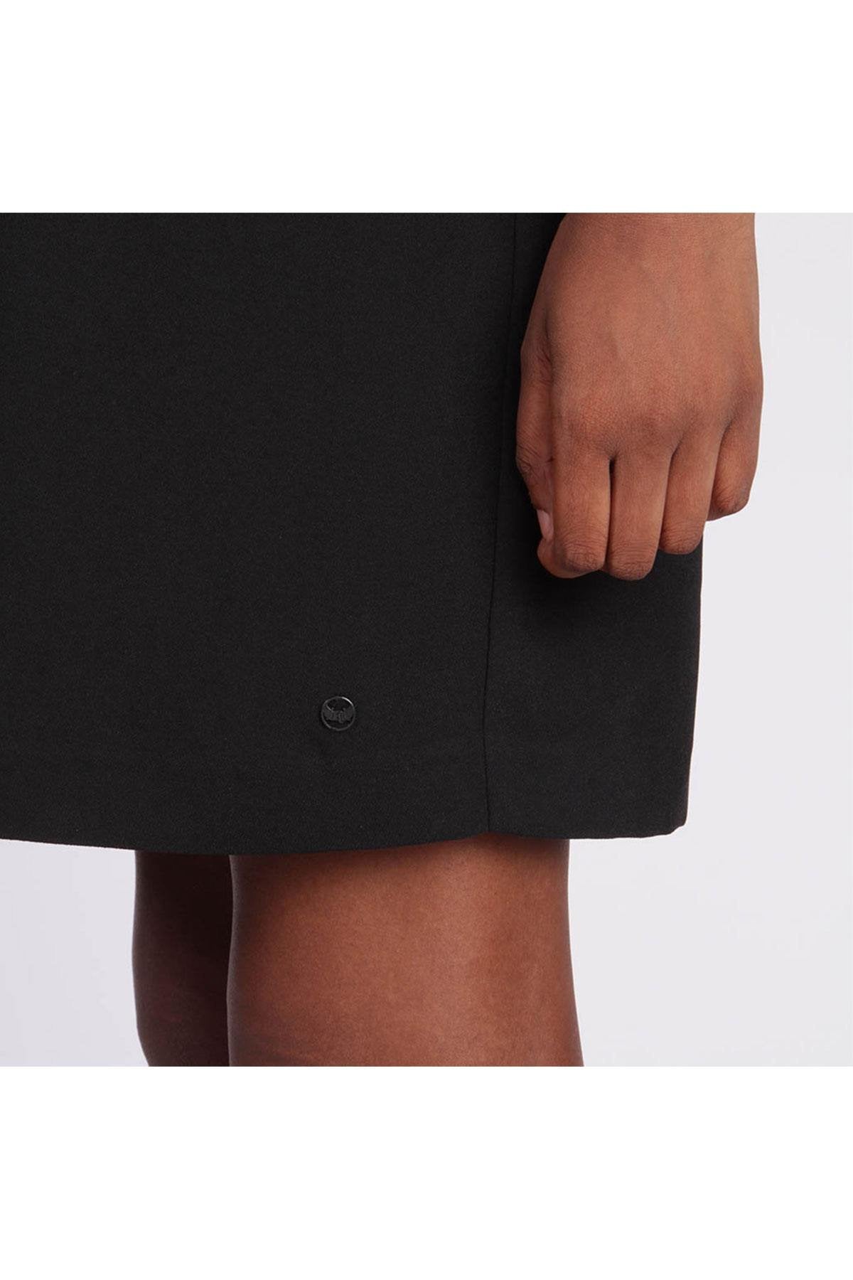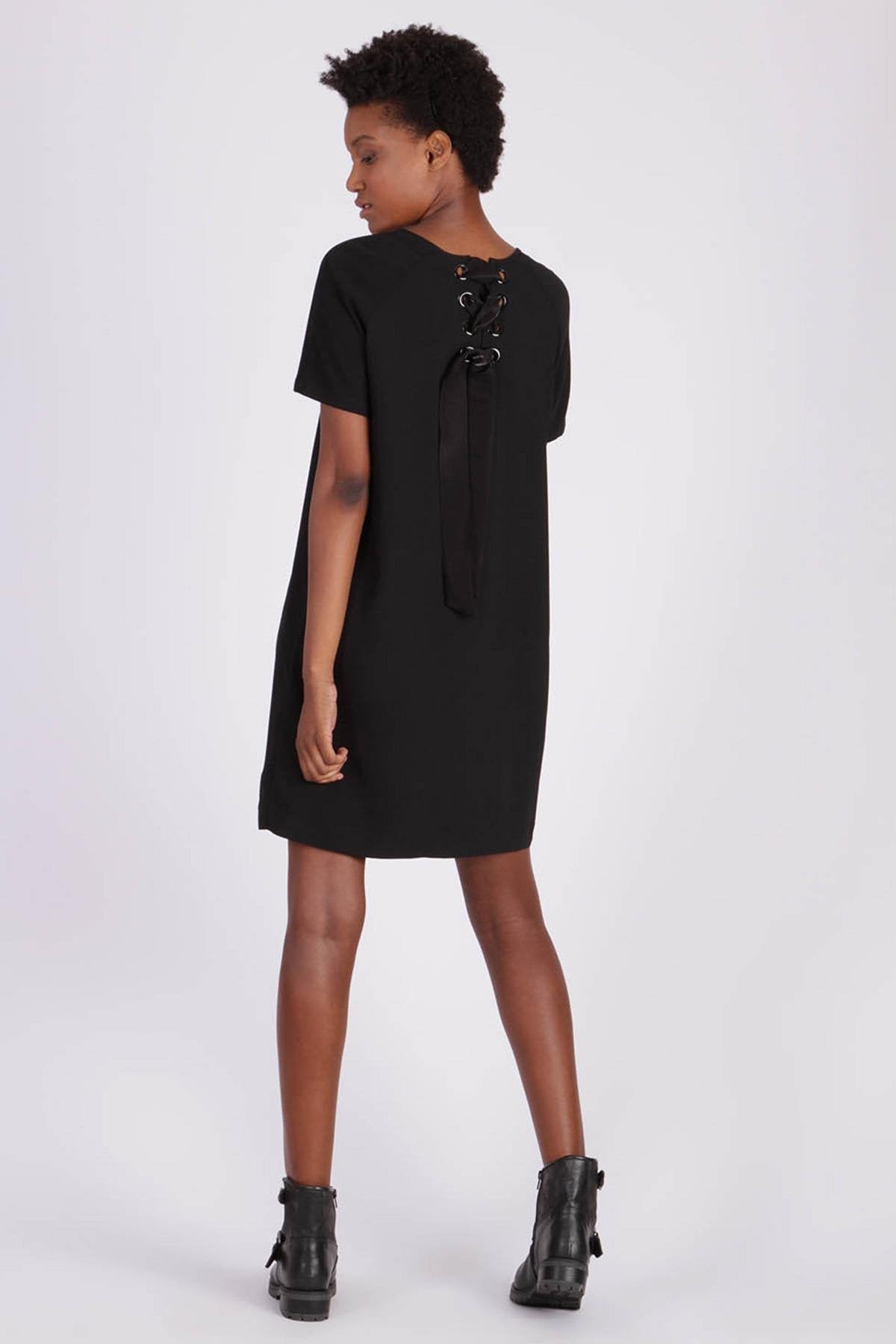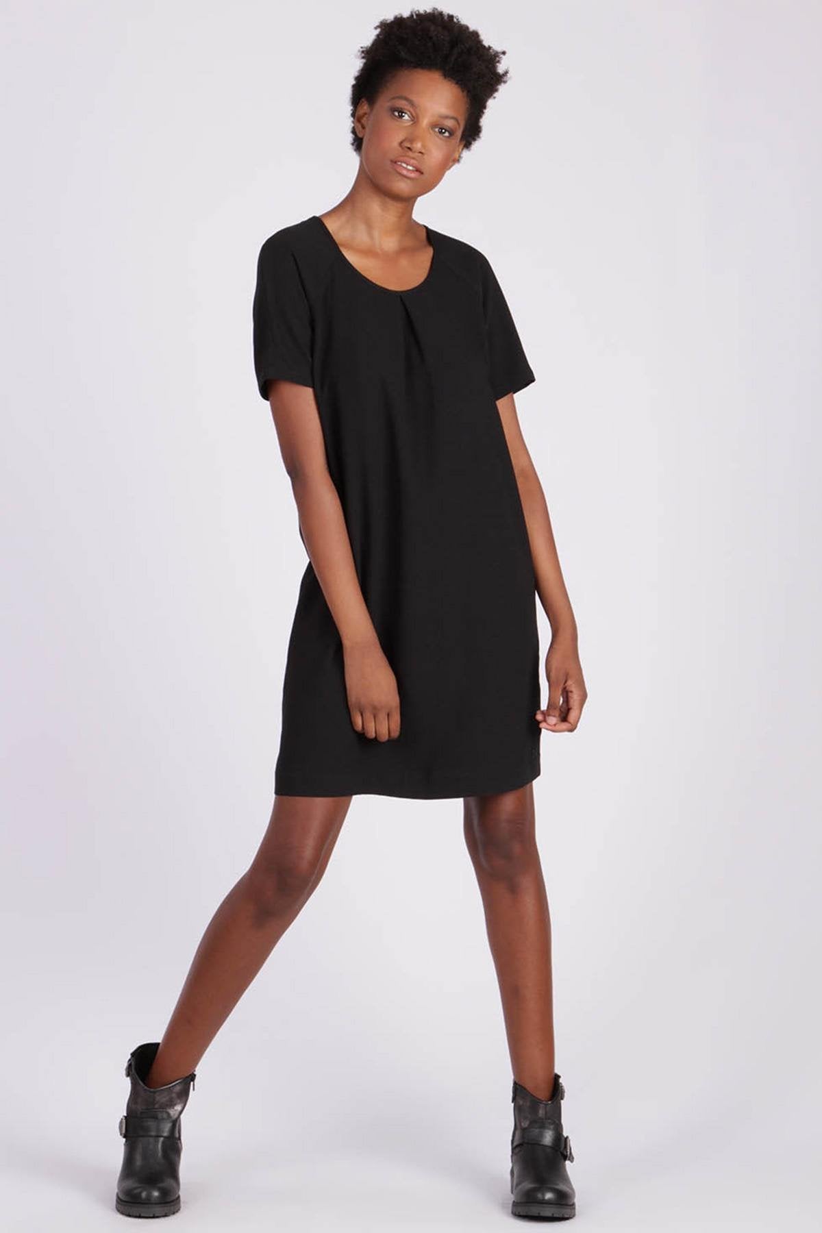 PAULA BLACK on upea musta mekko KAPORAL- kokoelmasta. Pyöreä kaulus, jossa ontto laskos, lyhyet hihat ja upea viimeistely niskan takana. Suora leikkaus. Koostumus: 100 % polyesteriä. Pohjassa merkin pyöreä metallimerkki....