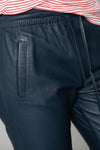 Sinisessä värissään nämä housut on varustettu... Joustava vyötärönauha, joka on vahvistettu kiristysnyörillä. Edessä on ommeltu kaksi raglantaskua. edessä, kun taas' Takana on kaksi taskua. Ne antavat hyvän viimeistelyn ja pitävät kankaan hyvin.