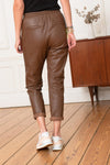 Pinta paljastaa joustavan ja sileän täysjyväisen nahan, mikä tekee näistä housuista erityisen miellyttävän vaatekappaleen. ; kantaa. Vyötärö on joustava ja koristeltu erittäin käytännöllisellä kiristysnyörillä, joka sopii kaikille. kaikille vartalotyypeille ja tarjoavat poikkeuksellista mukavuutta. Etuosa on vilkas. taskut, joihin voit sujauttaa kätesi tyylikkäästi. Rakastamme sen leikattua reunaa; suoraan tai polvissa olevaan vaakasuoraan.
