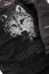 Het heeft ook de binnenvoering voorzien van een prachtige wolvenkop en tenslotte is dit model voorzien van een leren lipje waarmee je de drukknopen kunt verbergen zodra de vacht is verwijderd.