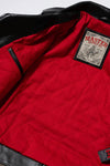 The Tombstone is a premium reinterpretation of the classic rider jacket, crafted from 1.5 mm full-grain cowhide leather with a glossy finish. Initially firm, the leather quickly softens to follow the silhouette while retaining its strength. The red cotton twill lining, reinforced with diamond quilting, delivers optimal comfort and a distinctive touch. The design features carefully considered details such as a gusseted back for ease of movement, pre-shaped sleeves, floating zipped cuffs, a flap coin pocket inspired by the American West, and a detachable leather belt with embossed snap buttons. Vintage silver Talon zips in 10 mm and 8 mm ensure smooth, durable fastening. Two inner pockets, including one zipped pocket, complete the set. Each jacket is designed in Toronto and made in a dedicated workshop, ensuring strict quality control at every stage.
