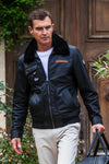 Steve McQueen black leather jacket with fur collar - Image n°1