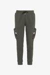 Kaki van kleur, deze broek heeft een elastische geribde band, versterkt door een trekkoord waardoor hij op maat kan worden aangepast. gemak. De uiteinden van de poten zijn tevens versierd met een geribbelde band waardoor het een wortelconfiguratie krijgt. Aan elke kant van de tas zijn twee zakken aanwezig. en op de achterkant wordt nog een raglan geplaatst. de achterkant vergezeld van een merklabel. Het vleugje originaliteit zit veilig in de twee grote zakken met ritssluiting, vergelijkbaar met de kleine zakjes die op elke broekspijp zijn genaaid.