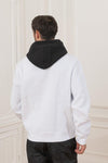 Door zijn witte kleur heeft deze trui een comfortabele pasvorm. een grote zwarte capuchon met trekkoord passend bij de jas. de kangoeroezak op de buik. Een mix van kleuren die een mooi ontwerp creëert en de toon zet voor de branding op de borst. Op de linkermouw is tevens een kleine merkbadge aanwezig. En over de mouwen gesproken, deze zijn versierd met een elastische ribboord, vergelijkbaar met die van de mouwen. die van de maat.