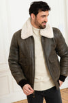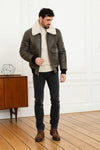Deze bruine tint brengt een soort vintage-esthetiek met zich mee terwijl de codes van de moderniteit actueel blijven. Wat het materiaal betreft heeft het merk gekozen voor: gedraaid schapenvlees ten opzichte van authentieke bommenwerpers.