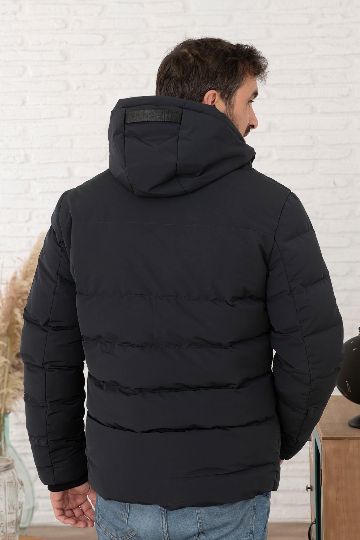 Dark Navy Blue Hooded Down Jacket for Men - Image n°4