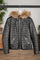 Zwart donsjack van echt leer met met bont gevoerde capuchon.
