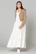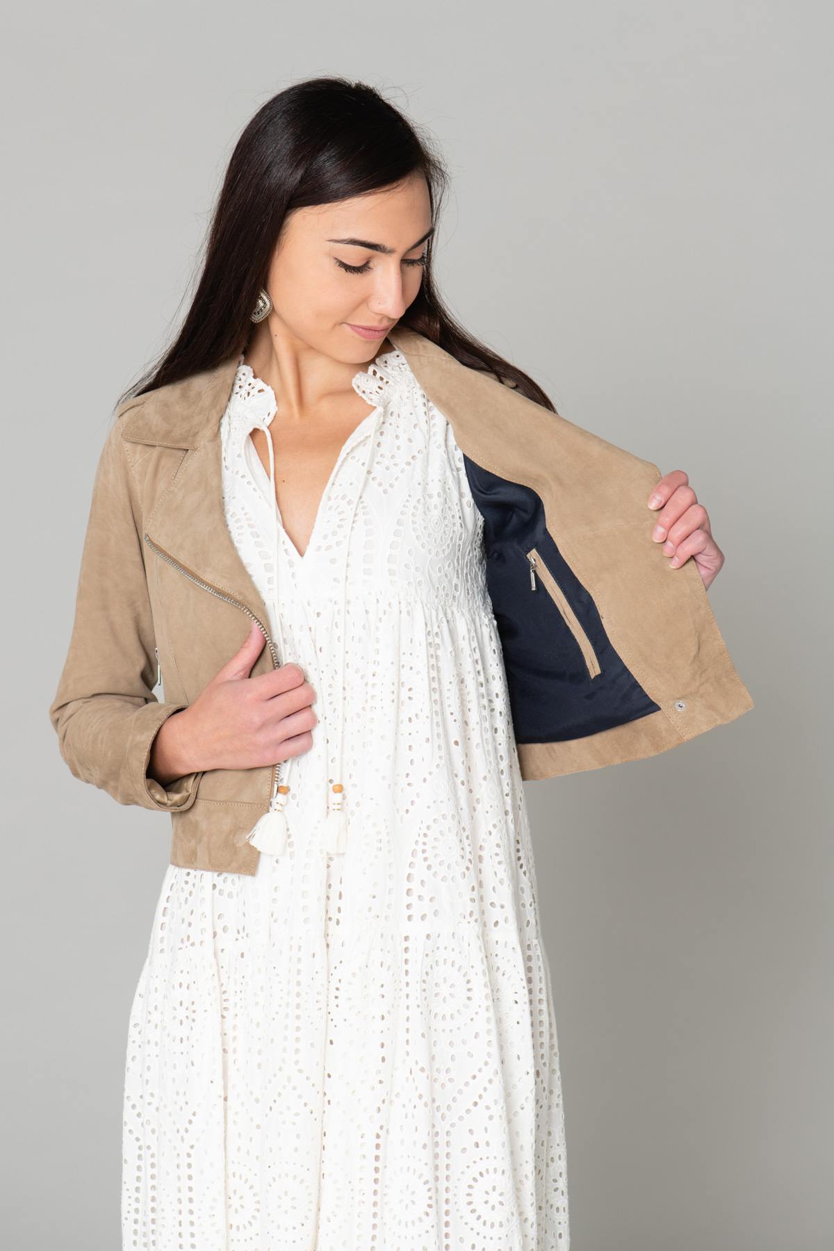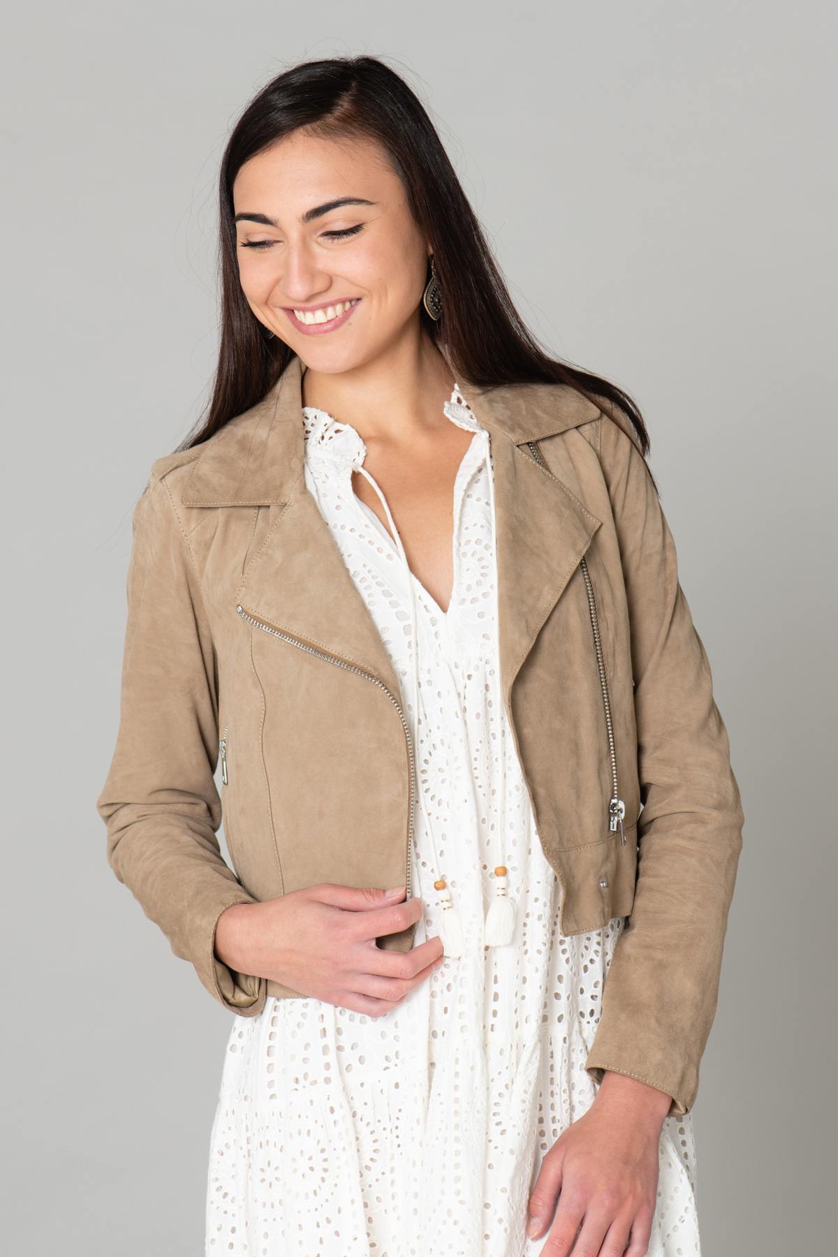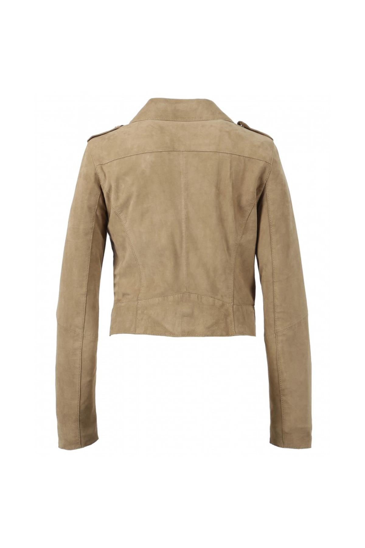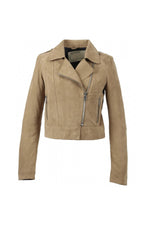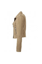 Je hoeft geen motorrijder te zijn om dit beige jasje te waarderen. Het past gemakkelijk bij al je outfits voor een bewezen casual chique stijl.
