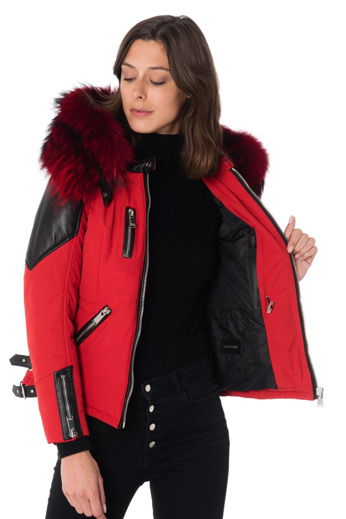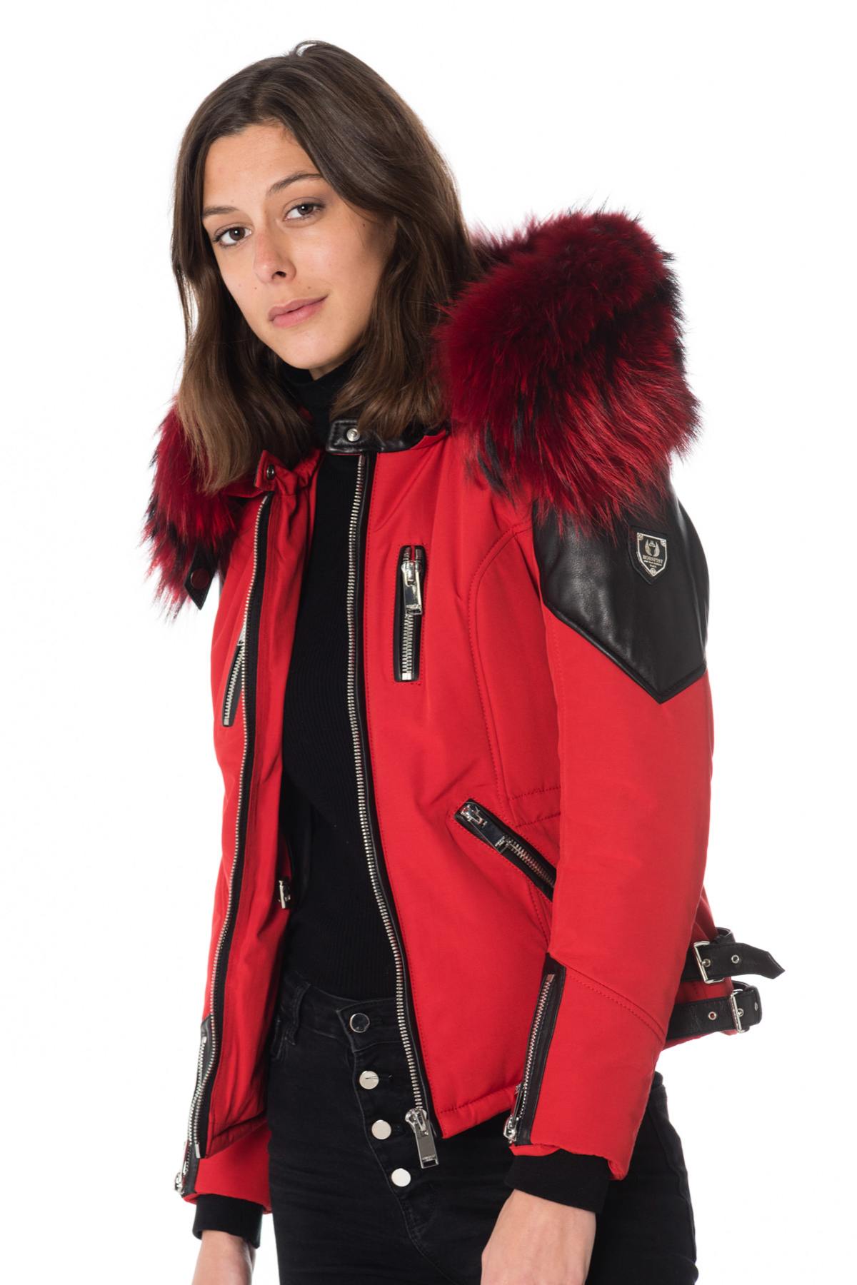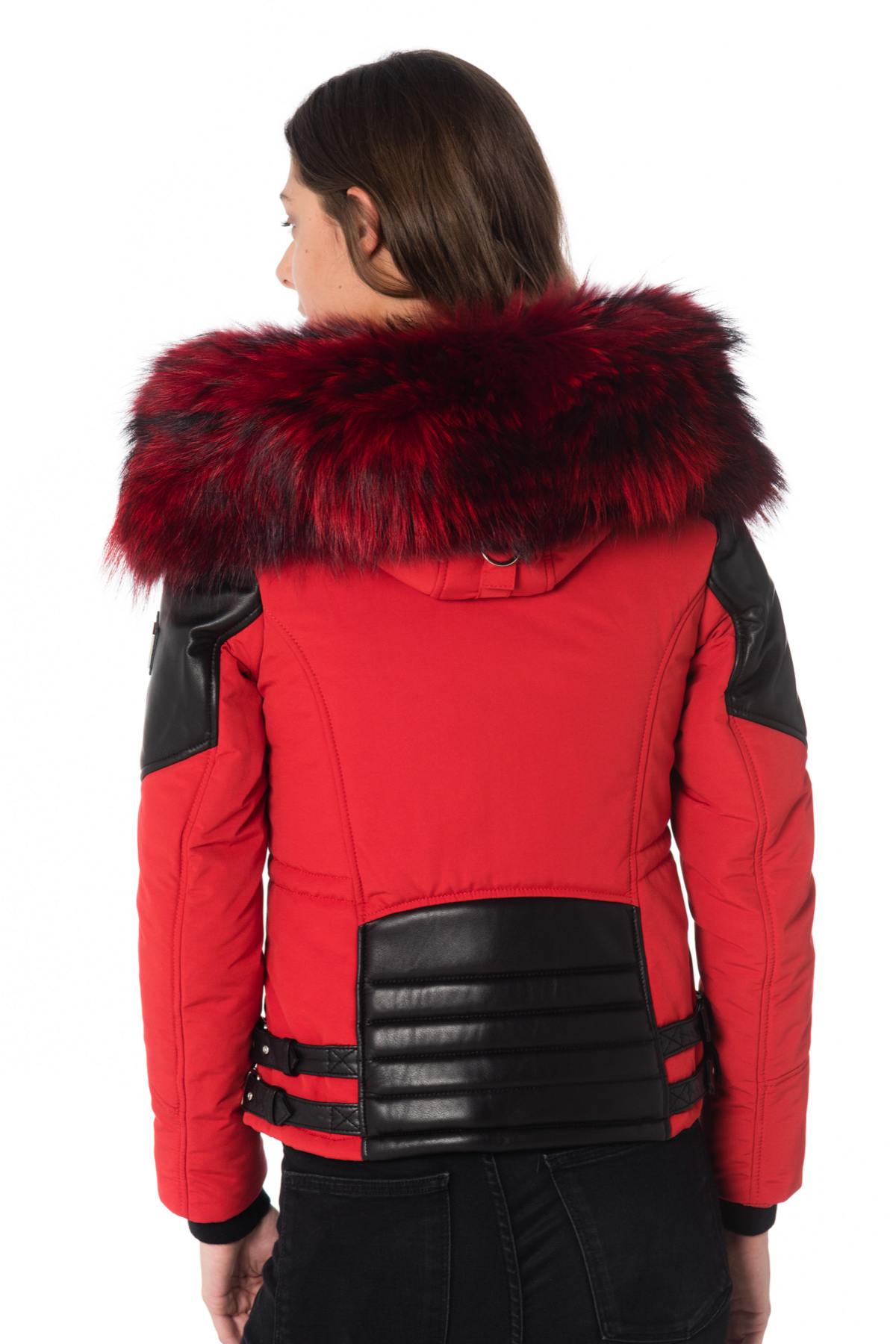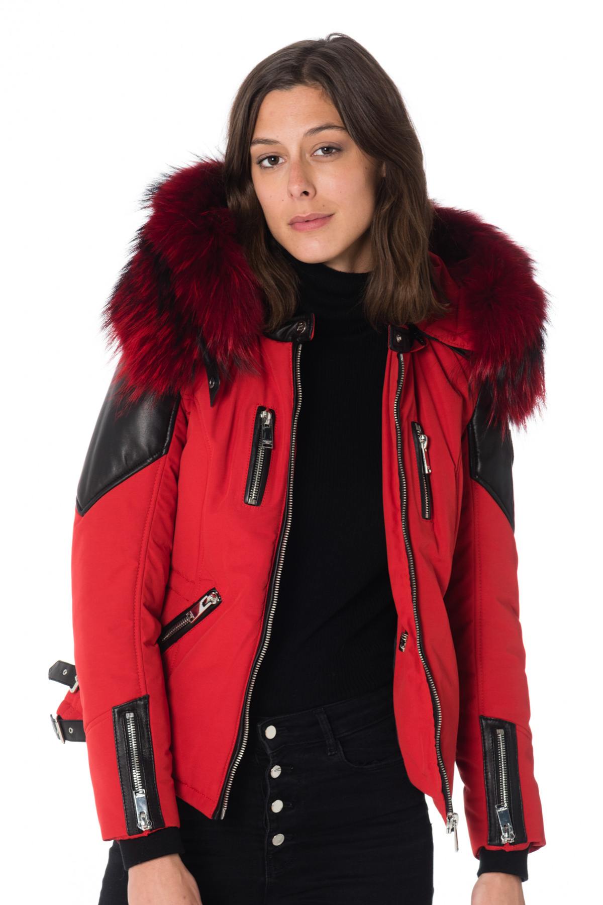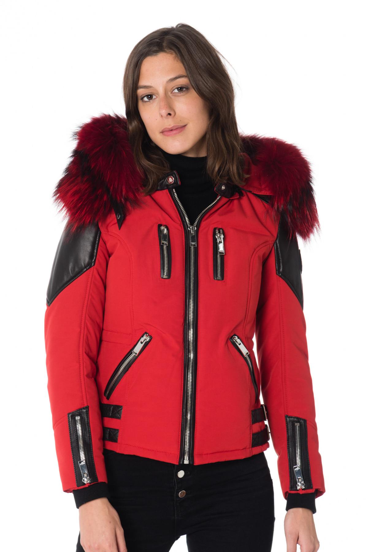 Je zult verleid worden door de sublieme rode vacht in echte wasbeer, afneembaar door middel van een drukknoop op een capuchon die zelf aan de capuchon is bevestigd. kan worden vastgemaakt met een ritssluiting.