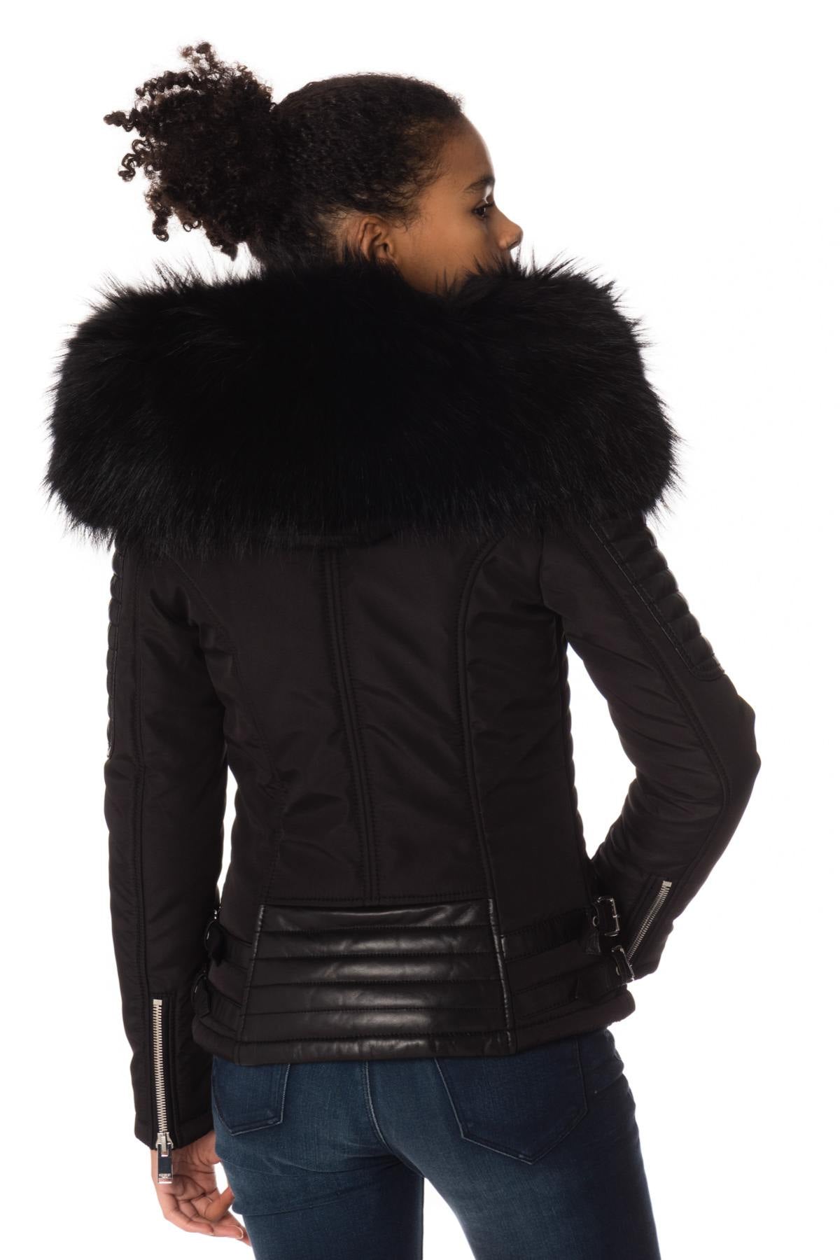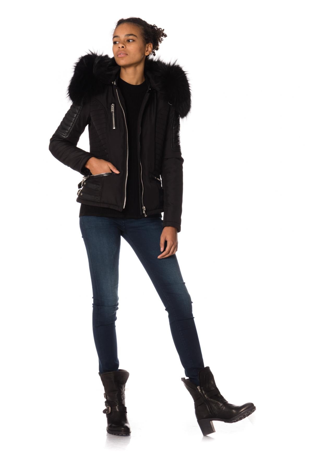 Dit donsjack in zeer trendy stijl zal perfect zijn met een coltrui, een stoere slanke jeans en lage laarzen.