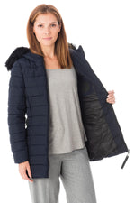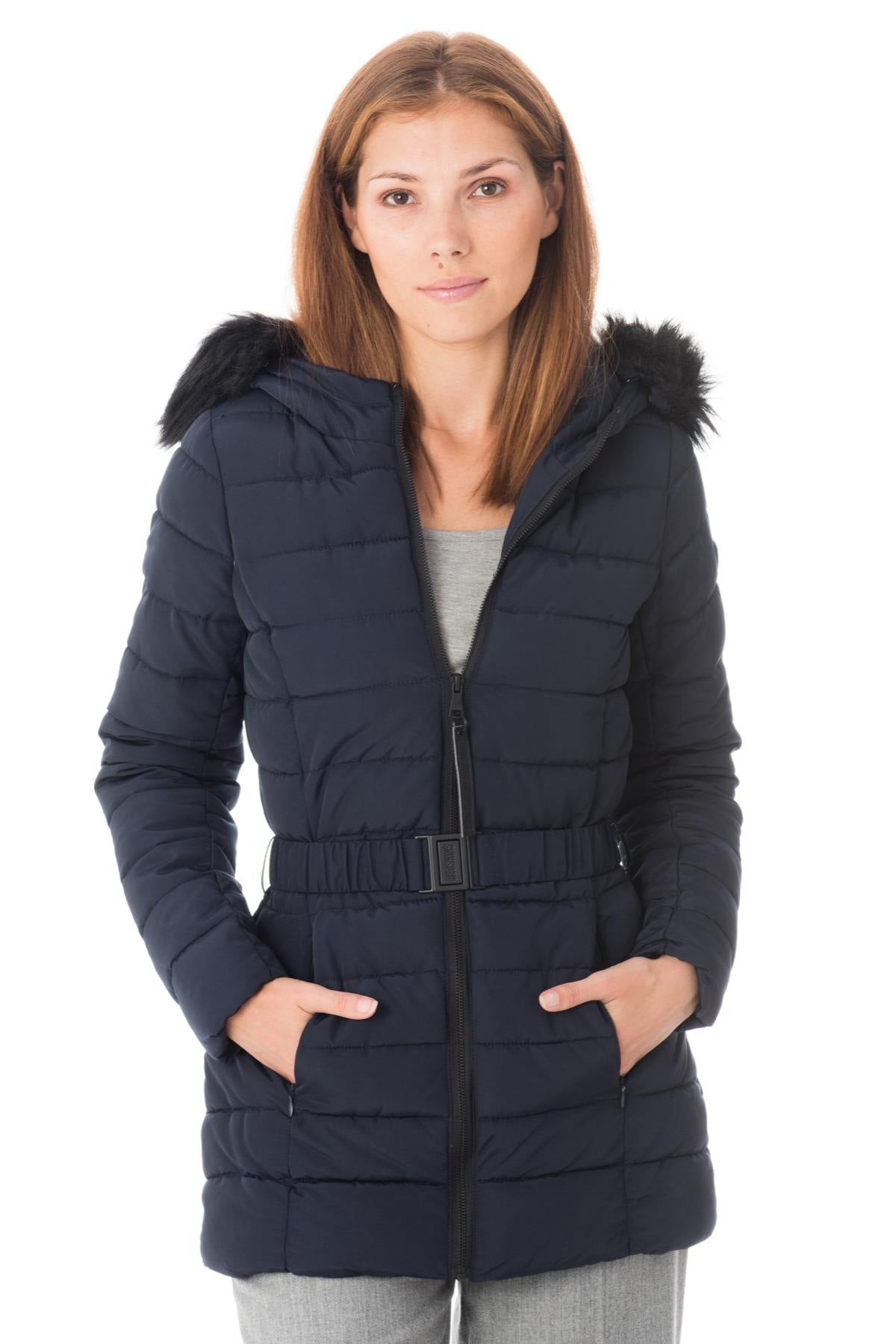 Het ALLURE BERYL NAVY DARK H16 donsjack is een jas met een getailleerde snit, zeer vrouwelijk.