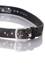 Geperforeerde sterren over de lengte van het model en zilveren metalen sterren die de riem mooi afmaken.