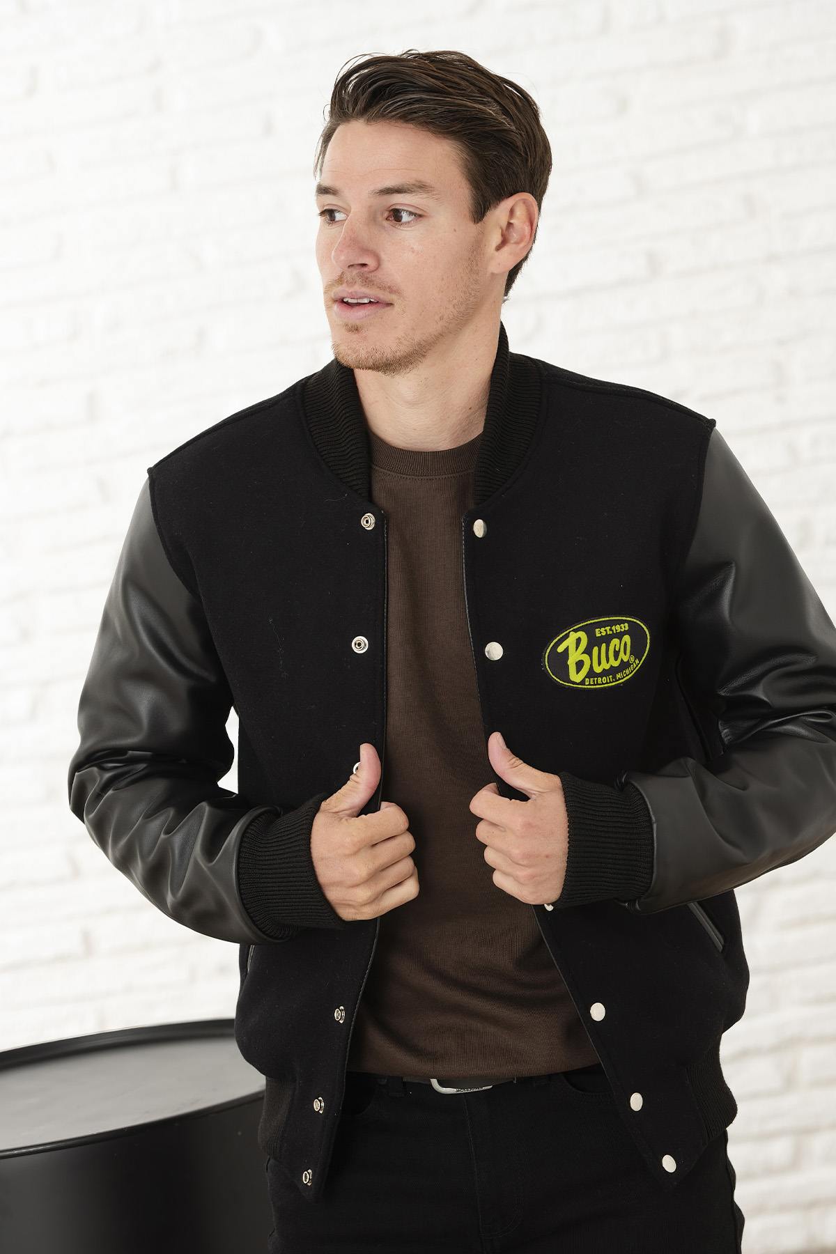 Buco's J500 gele logo is perfect voor een casual en toch verfijnde look. Voor een alledaagse outfit combineer je hem met een jeans en sneakers voor een urban en trendy look. Draag hem in de winter over een wollen trui en voeg een sjaal toe voor extra warmte. In het tussenseizoen past hij perfect bij een T-shirt en sneakers. Deze jas is ideaal voor casual uitjes, weekendjes in de stad of zelfs om een sportief chique tintje toe te voegen aan een meer formele outfit. Het ontwerp van dik leer en wol maakt het een duurzaam en comfortabel kledingstuk, geschikt voor alle gelegenheden.