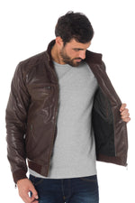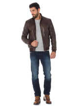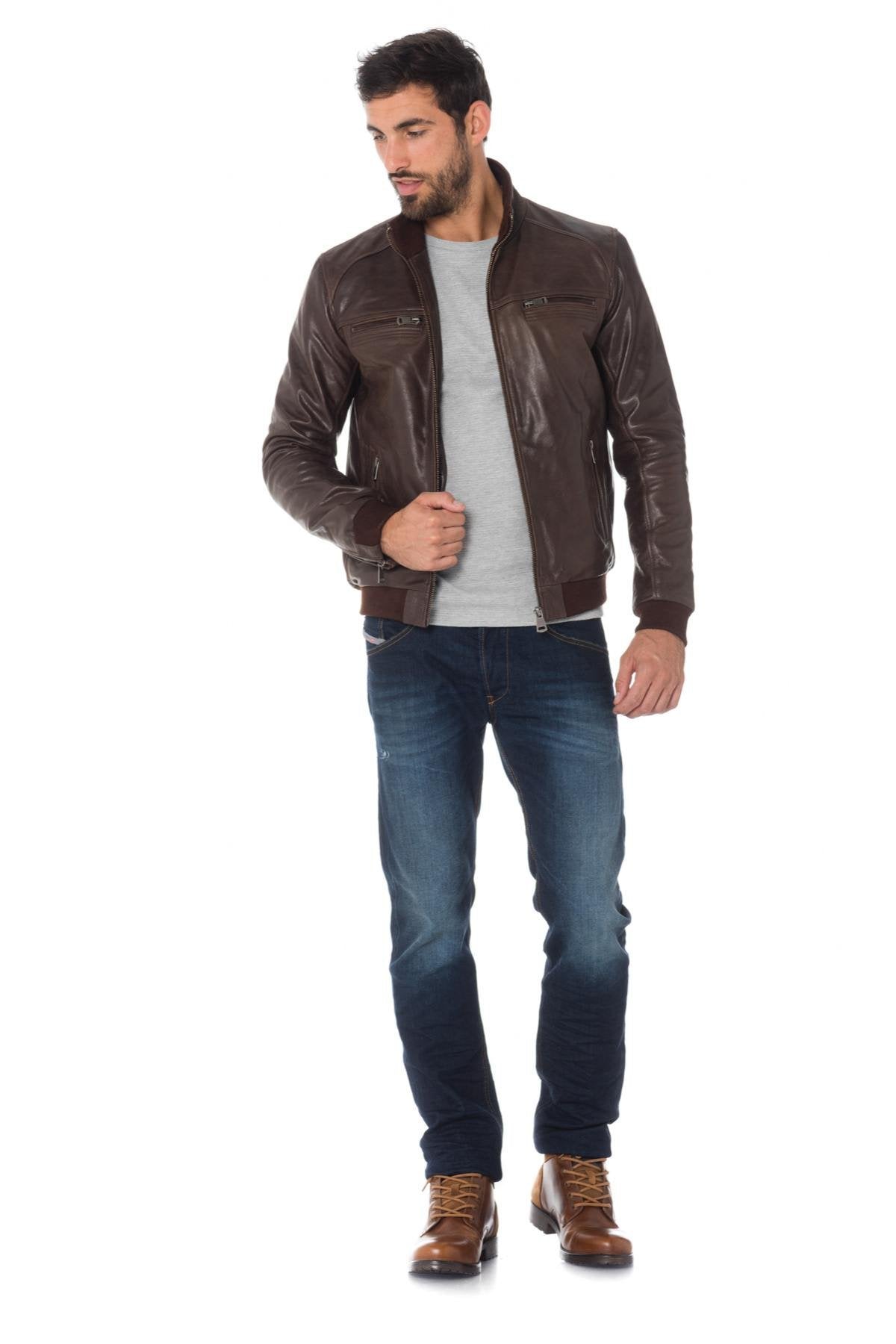 Dit buffellederen jack heeft een voering van katoen en polyester, ideaal voor het tussenseizoen.