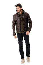 Buffelleer en polyester binnenkant, deze jas is comfortabel.