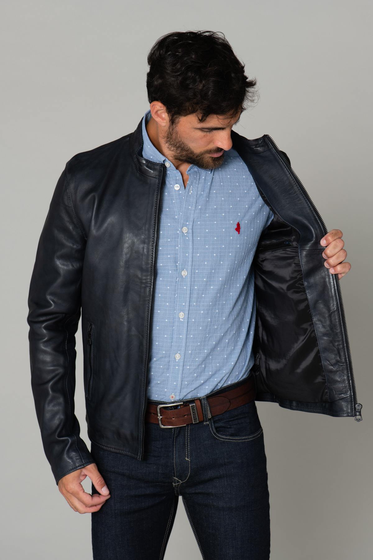 Als je een elegant type bent zonder te opzichtig te zijn, zul je zeker verleid worden door dit FERULLI SHEEP MANILA NAVY jasje dat hier wordt aangeboden. van het legendarische merk Daytona. Dit bikerjack is gemaakt van schapenleer en heeft een getailleerde snit.