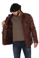 De FOKKER COW YEGER ANTIQUE COGNAC is een safari-jas van cognackleurig rundleer met een verouderde look die karakter aan elke outfit geeft. je outfits.